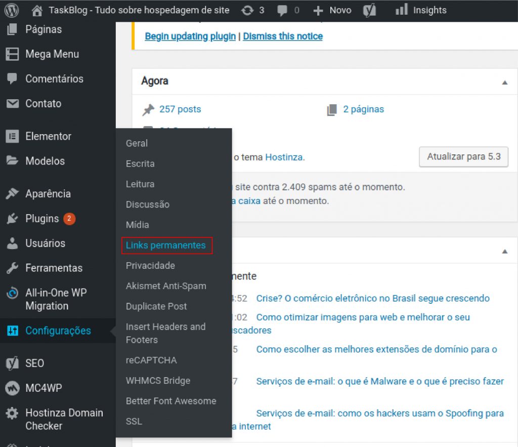 O WordPress traz como padrão a URL não amigável. No entanto, é muito simples alterar essa opção em Configurações – Links Permanentes: