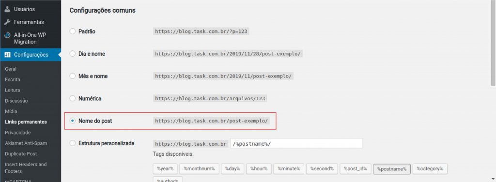 Nenhum dos tipos de URL acima são consideradas incorretas e todas são reconhecidas pelos buscadores. No entanto, cada uma tem um objetivo. Com dito, a mais usual é a opção “nome do post” para aqueles que querem ter uma página localizada por palavra-chave.